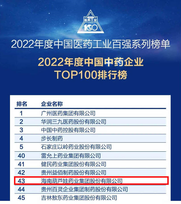 俄罗斯专享会294药业集团连续4年荣登“中国中药企业TOP100排行榜”,排名上升至第43位
